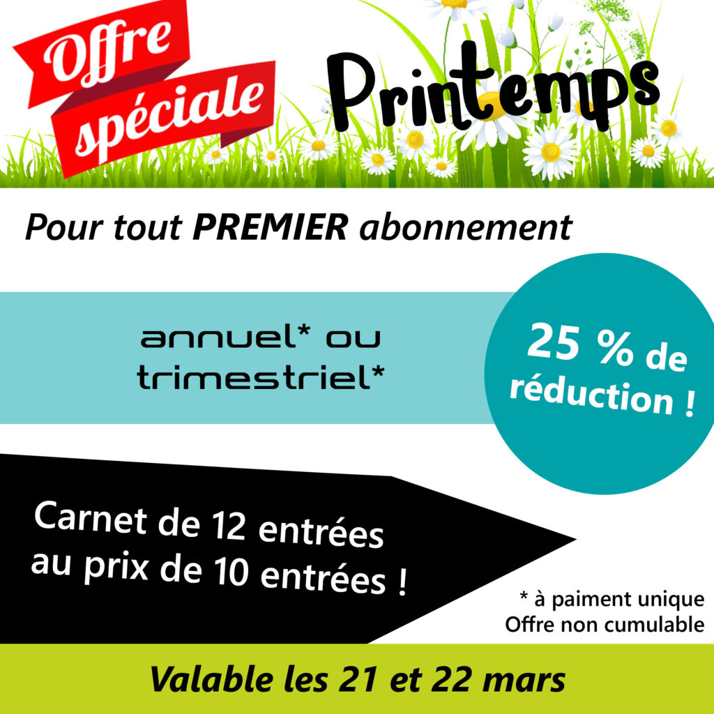 25 % de réduction sur les premiers abonnements annuels ou trimestriels ! Plus d’infos sur place.